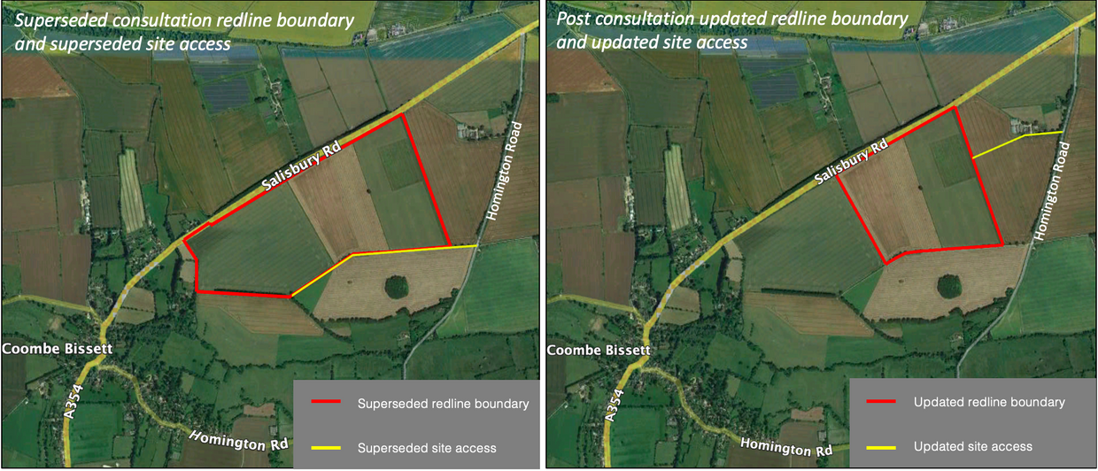 The proposed construction and maintenance route will access the site using the A354, turning south onto Homington Road and west into the site using an existing farm access.